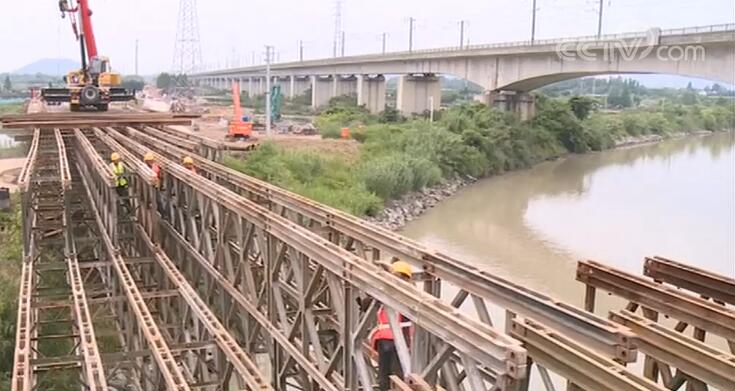 德清段跨阜溪鋼便橋搭建成功,“湖杭鐵路”快馬加鞭搶工期